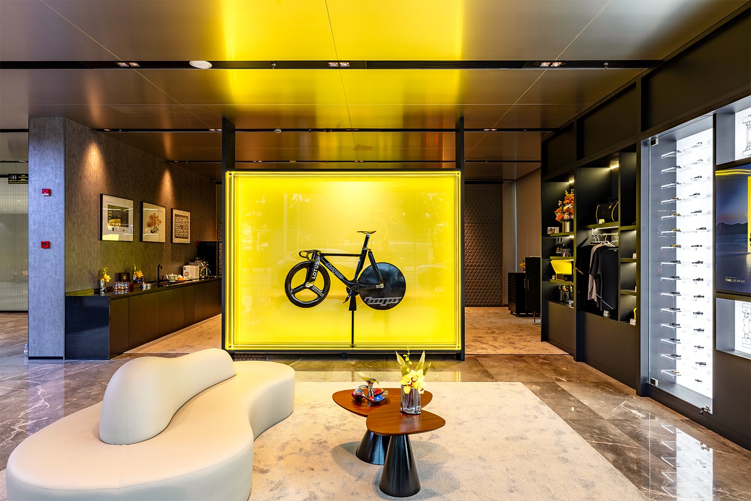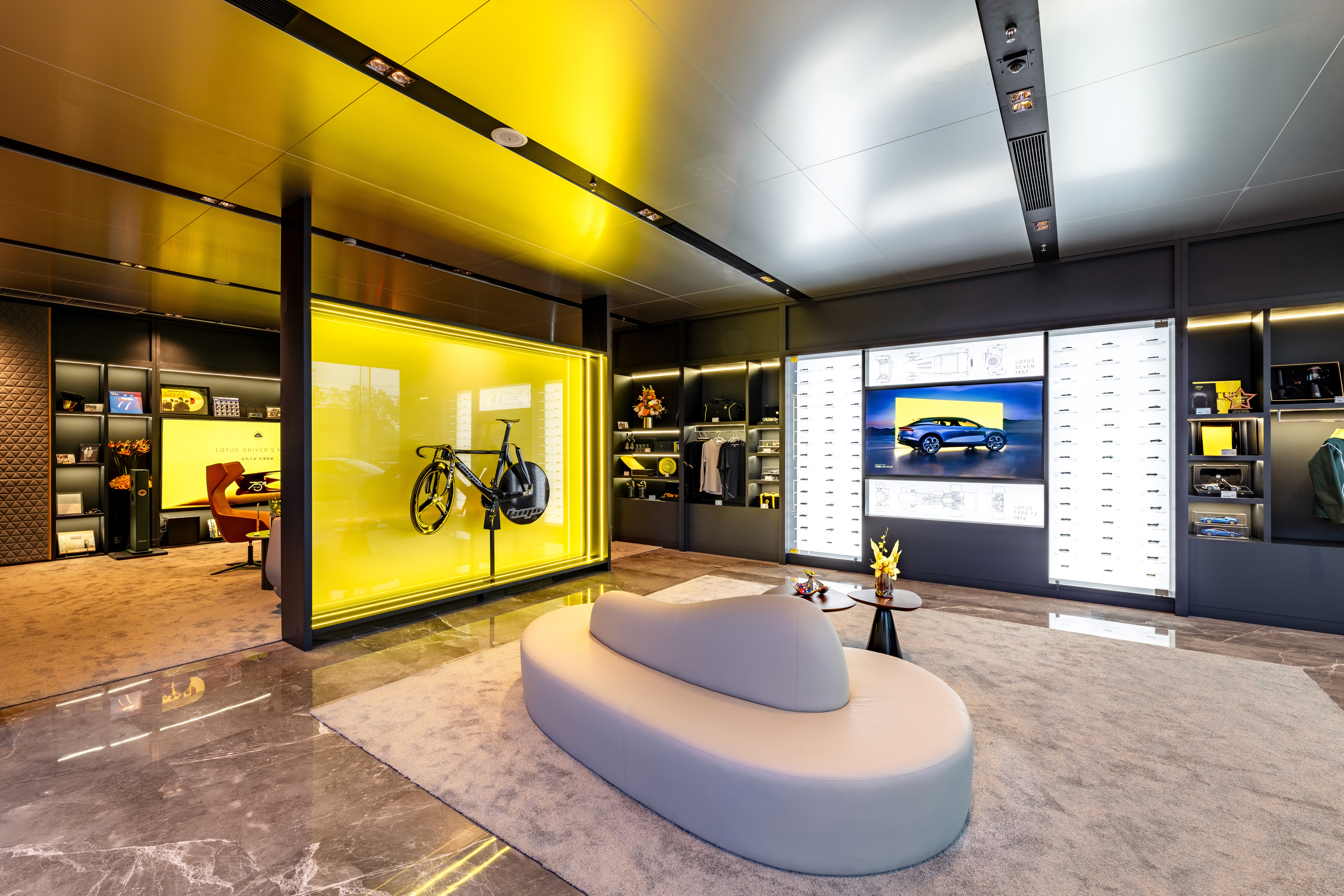 Upon entering the showroom, various zones gradually deepen the connection between the customer and the brand. The "Driver to Driver" concept runs throughout, with each area embedded with rich experiential touchpoints. The brand story is woven into the customer journey, expressing Lotus's deep-rooted racing heritage and its performance-driven design philosophy.